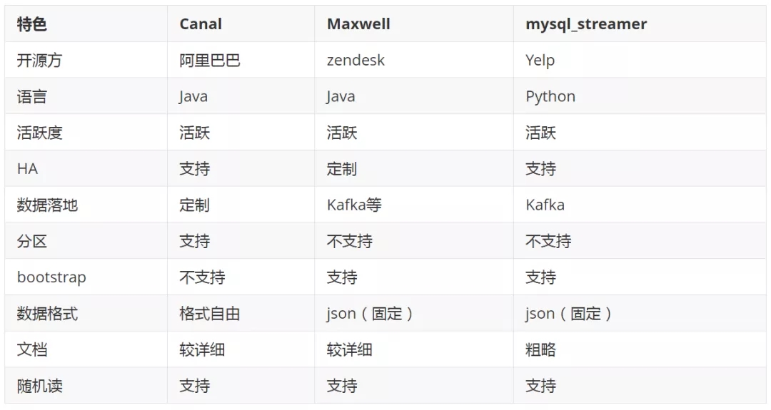 MySQL 的 Binlog 日志处理工具(Canal/Maxwell/Databus/DTS)对比