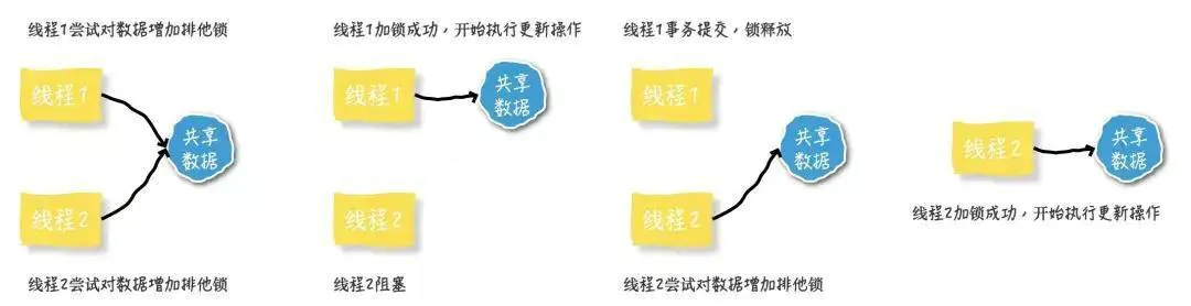 在对记录进行修改前,先尝试为该记录加上排他锁(exclusive locking)。