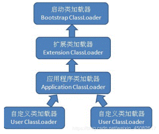 如果一个类加载器(ClassLoader)收到了类加载的请求,它首先不会自己去尝试加载这个类,而是把这个请求委托给父类加载器去完成,每一个层次的类加载器都是如此,因此所有的加载请求最终都应该传送到顶层的启动类加载器中,只有当父类加载器反馈自己无法完成这个加载请求(它的搜索范围中没有找到所需要加载的类)时,子加载器才会尝试自己去加载。