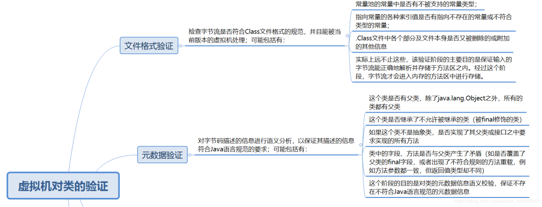 验证时连接阶段的第一步,这一阶段的目的是为了确保Class文件的字节流中包含的信息符合当前虚拟机的要求,并且不会危害虚拟机自身的安全。