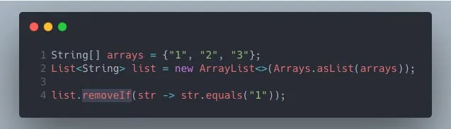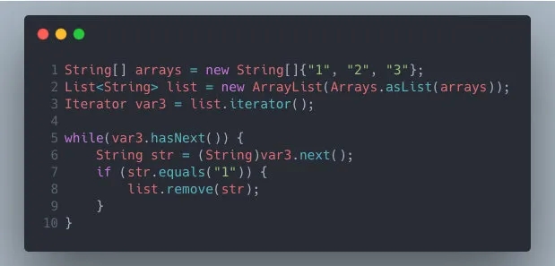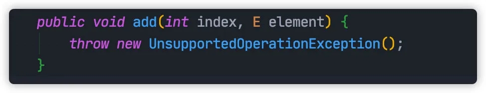 这段代码表面看起来没有任何问题,编译也能通过,但是真正测试运行的时候将会在第 4 行抛出 UnsupportedOperationException。
