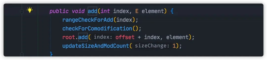 所有外部读写动作看起来是在操作 SubList ,实际上底层动作却都发生在原始 List 中,比如 add 方法: