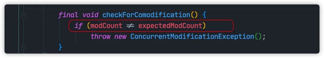 ArrayList#remove 之后将会使 modCount 加一,expectedModCount与 modCount 将会不相等,这就导致迭代器遍历时将会抛错。