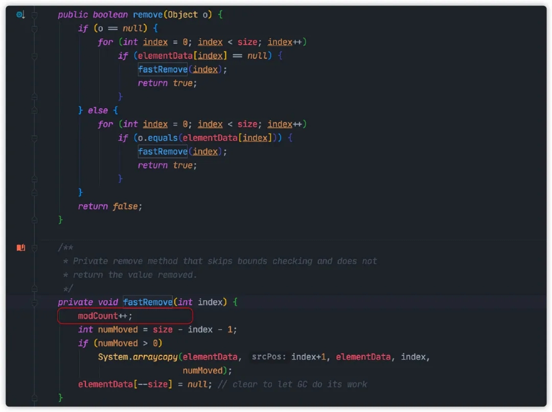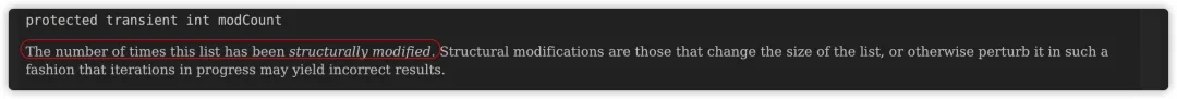 modCount 来源于 ArrayList 的父类 AbstractList,可以用来记录 List 集合被修改的次数。
