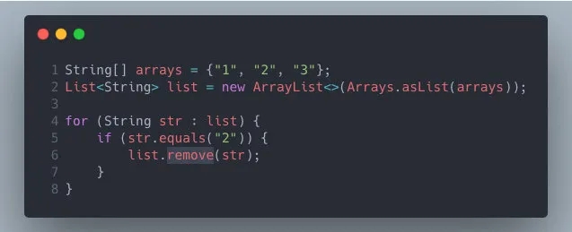 上面的代码我们使用 foreach 方式遍历 List 集合,如果符合条件,将会从集合中删除改元素。