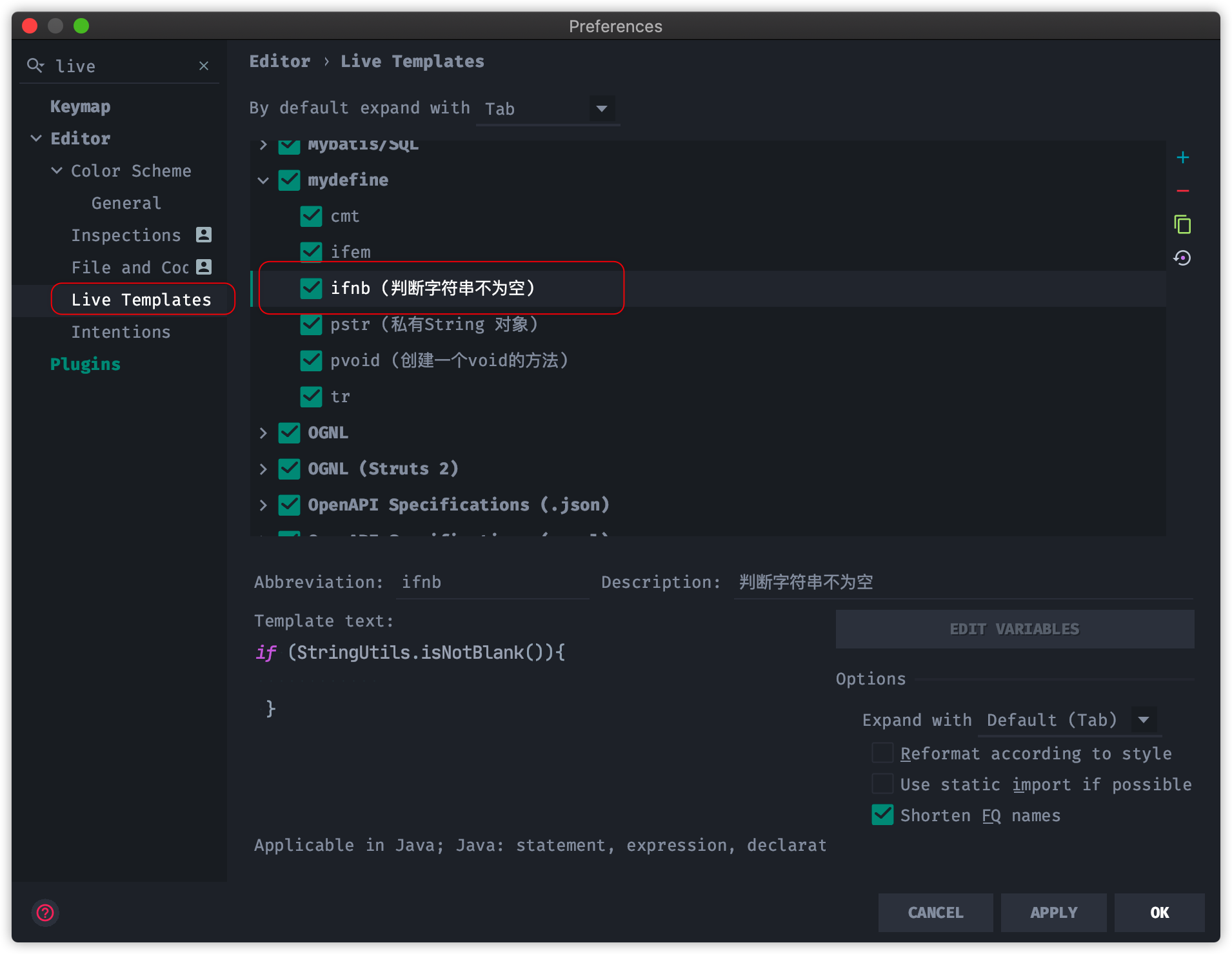 判断字符串是否为空,使用频率非常高,这里大家可以使用 IDEA Prefix 的功能,输入直接生成判空语句。