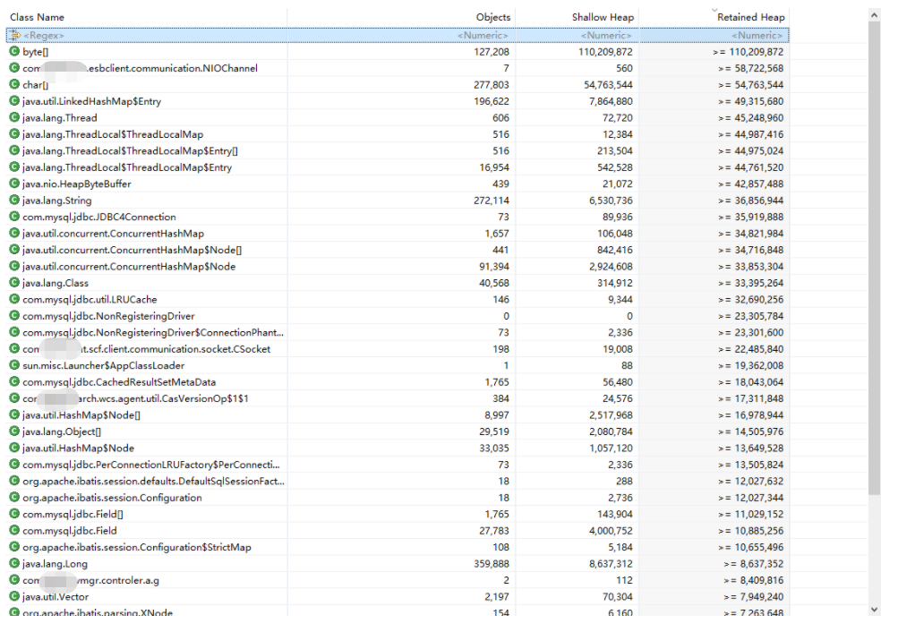 虽说一开始就基本确认与堆内存无关,因为泄露的内存占用超过了堆内存限制4G,但是我们为了保险起见先看下堆内存有什么线索。