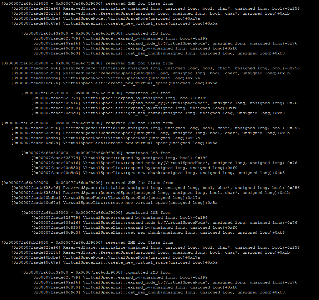 「可以看出,在元空间耗尽时,系统出发了Full GC,元空间内存得到回收,并且卸载了很多类。」