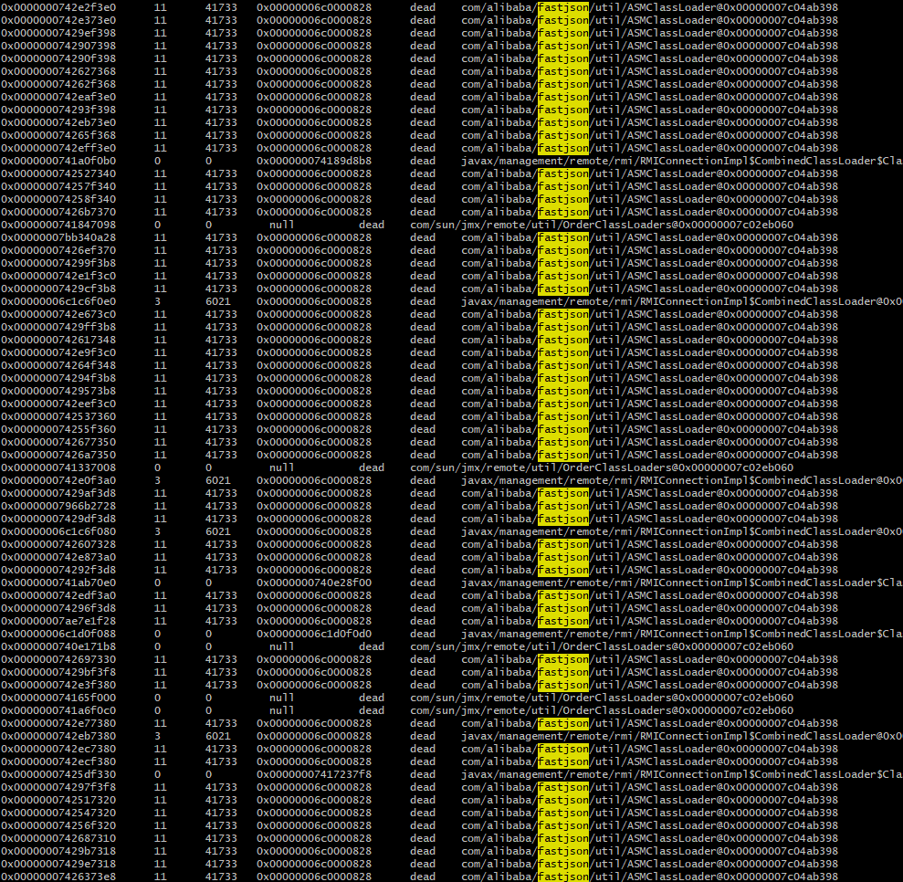 「如果在回收前,使用jmap查看类加载情况,同样也可以发现大量的fastjson相关类:」