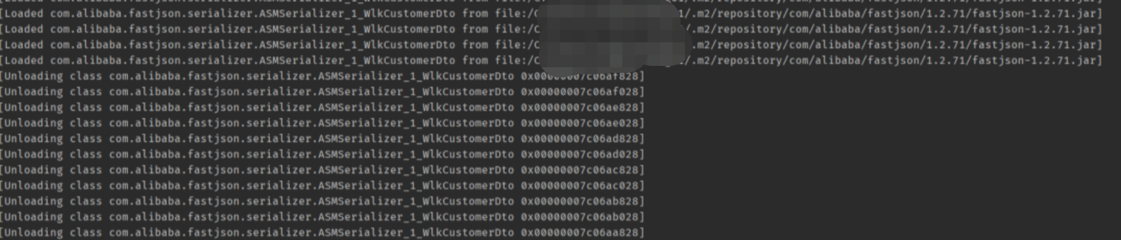可以看到生成了无数com.alibaba.fastjson.serializer.ASMSerializer_1_WlkCustomerDto: