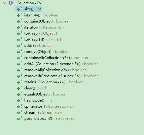 Collection接口中的方法如下: