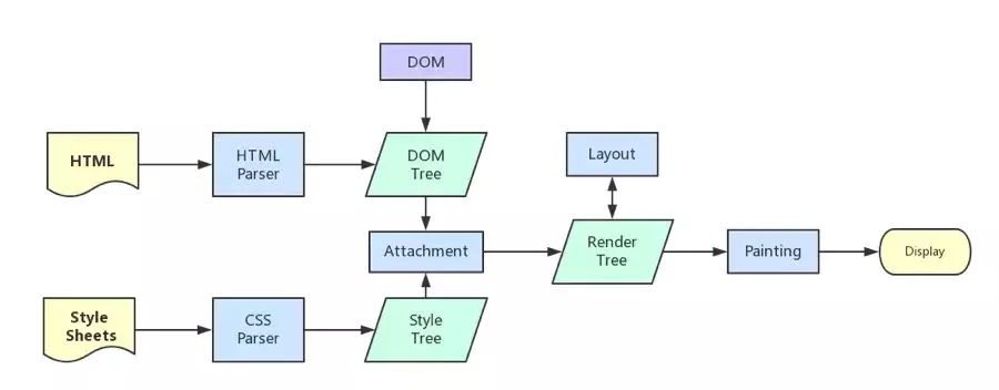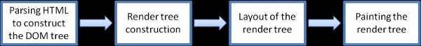1.解析HTML建立dom树 2.解析css构建render树(将CSS代码解析成树形的数据结构,然后结合DOM合并成render树) 3.布局render树(确定每个节点在屏幕上的位置) 4.绘制render树(遍历render树,并使用UI后端层绘制每个节点)
