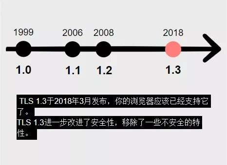 于是 IETF 将 SSL 作了标准化,重新命名为 TLS(Transport Layer Security)。在 1999 年,TLS 1.0 诞生了(其实也就是 SSL 3.1)。
