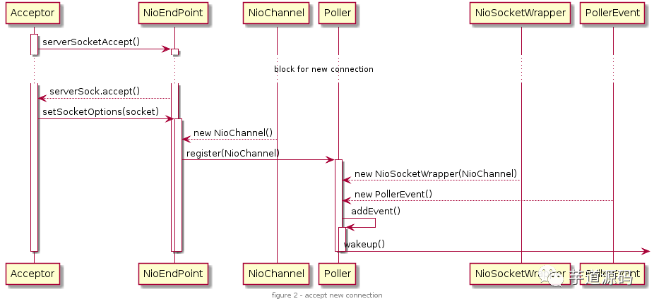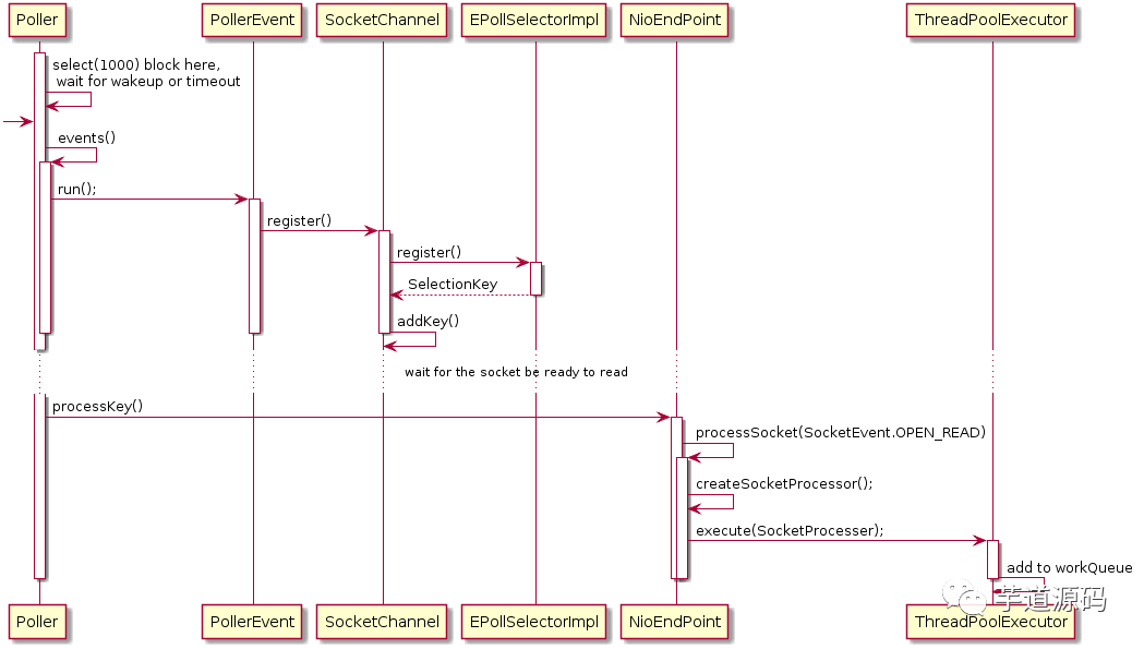 addEvent() 方法会将 Socket 添加到该 Poller 的 PollerEvent 队列中。到此 Acceptor 的任务就完成了。