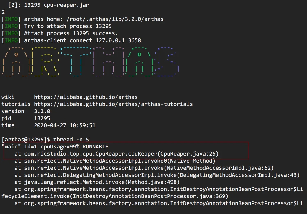 thread阿里开源的arthas现在已经几乎包揽了我们线上排查问题的工作,提供了一个很完整的工具集。在这个场景中,也只需要一个thread -n命令即可。