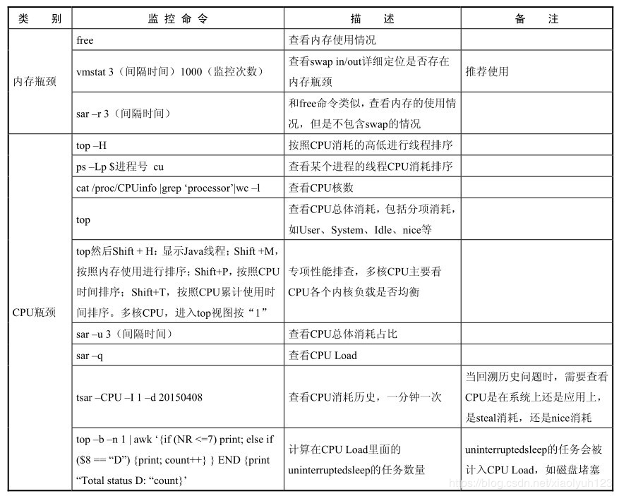 top 然后shift+h:显示java线程,然后shift+M:按照内存使用进行排序;shift+P:按照cpu时间排序;shift+T:按照cpu累计使用时间排序多核cpu,按“1”进入top视图