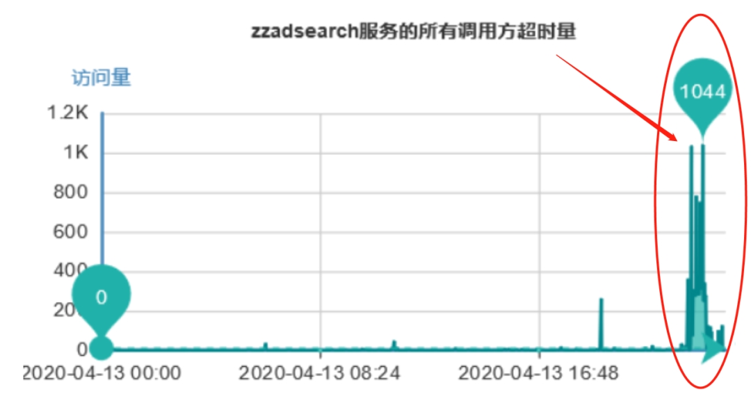 今年4月份,我们的广告服务在新版本上线后,收到了大量的服务超时告警,通过下面的监控图可以看到:超时量突然大面积增加,1分钟内甚至达到了上千次接口超时。下面详细介绍下该问题的排查过程。