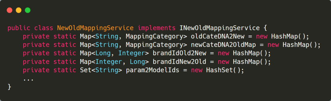 进一步查看代码,发现这个类中存在大量的静态HashMap,用于缓存新旧类目转换时需要用到的各种数据,以减少RPC调用,提高转换性能。