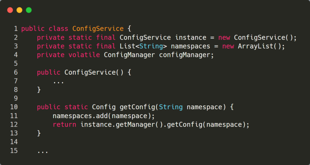 ConfigService这个类在第三方Apollo的包中,不过源代码被公司架构部进行了二次改造,通过代码可以看出:问题出在了第11行,每次调用getConfig方法时都会往List中添加元素,并且未做去重处理。