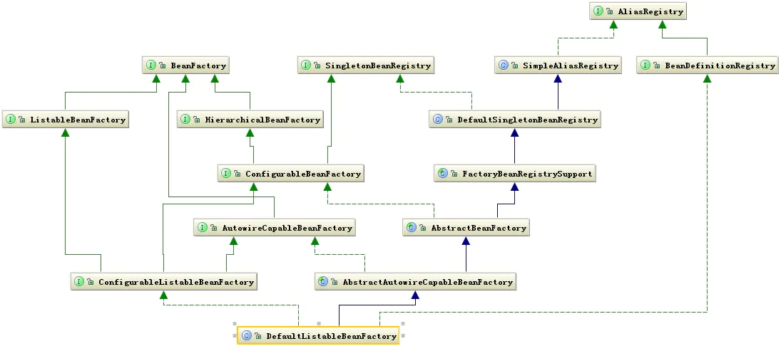 图 9. DefaultListableBeanFactory 类继承关系图