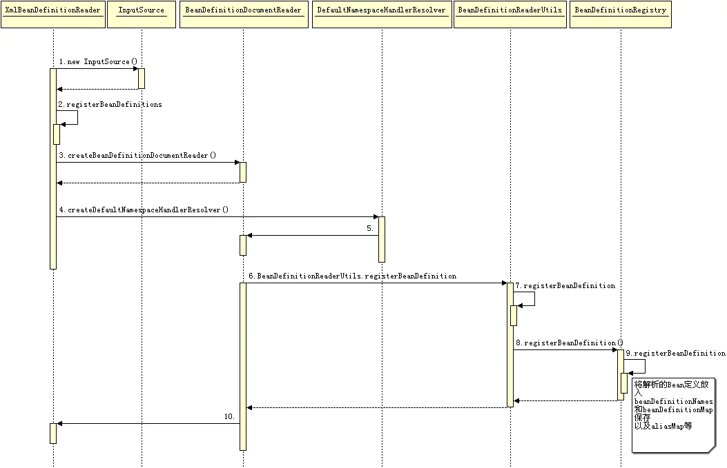 Bean 的解析和登记流程时序图如下:
