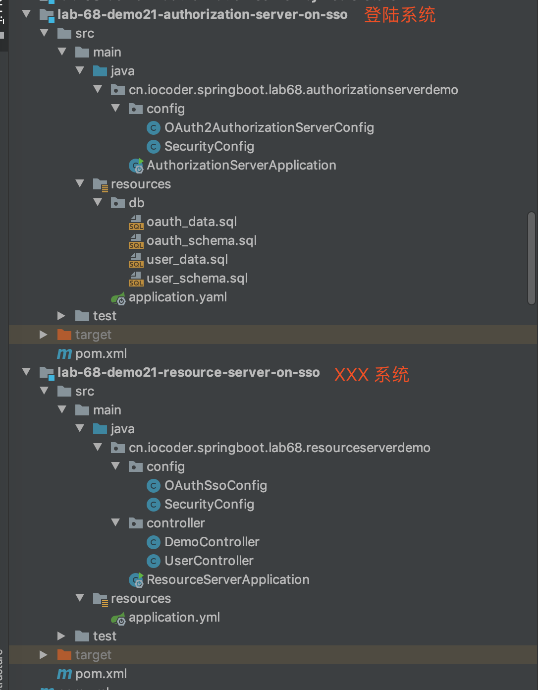 创建 lab-68-demo21-resource-server-on-sso 项目,搭建 XXX 系统,接入统一登录系统实现 SSO 功能。