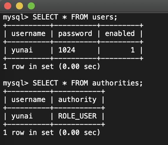 ② 执行 user_data.sql 脚本,插入一个用户记录和一个授权记录。
