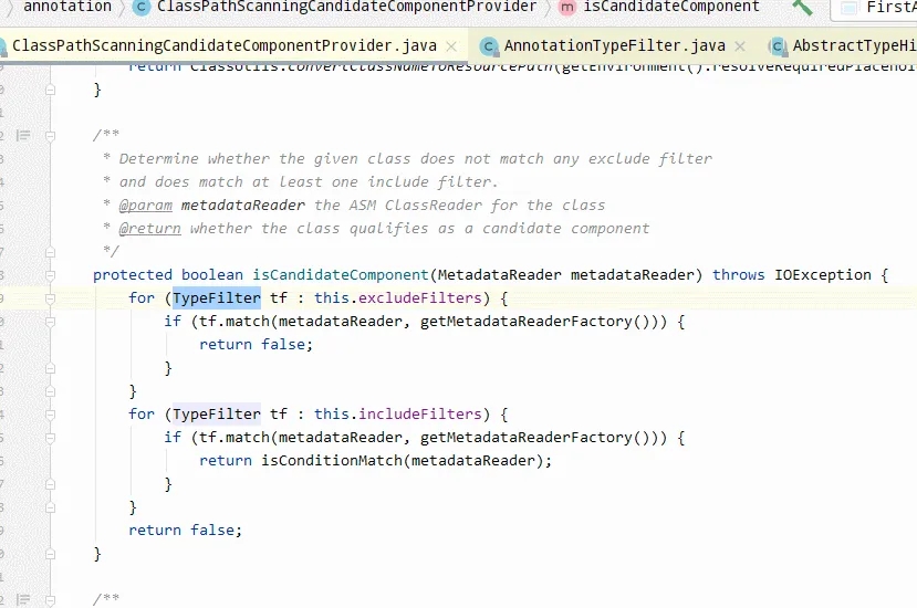 回顾ClassPathScanningCandidateComponentProvider 中的关键的代码片段如下: