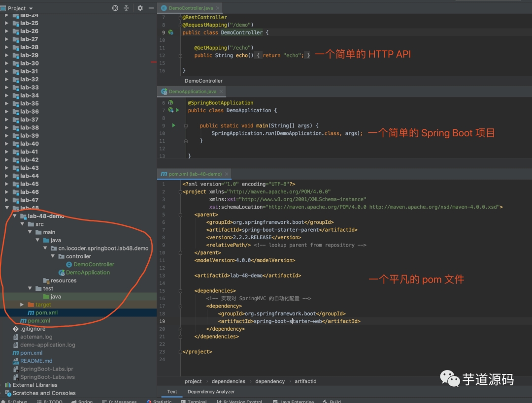 为了演示方便,胖友可以参考 lab-48-demo 项目,搭建一个简单的 Spring Boot 项目,提供了一个简单的 HTTP API。如下图所示: