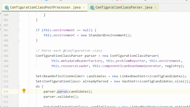 ConfigurationClassParser#parse方法负责解析@Configuration class 为ConfigurationClass对象