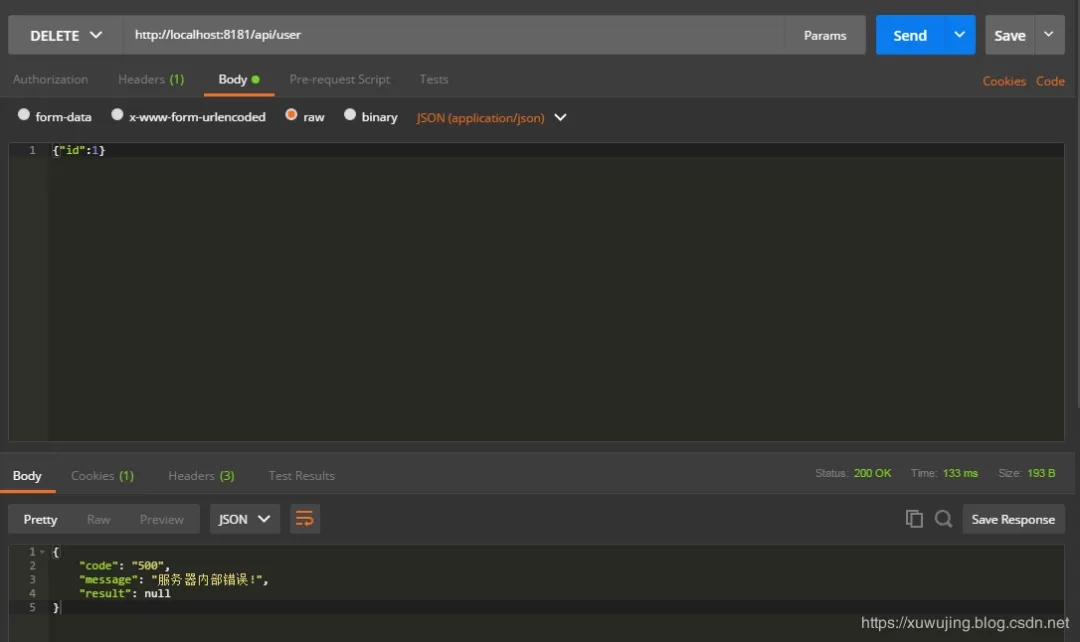示例图:可以看出将我们抛出的异常进行数据封装,然后将异常返回出来。