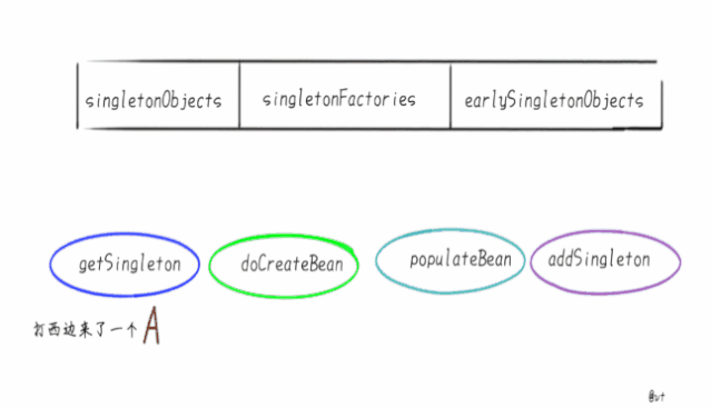 那么Spring准备了两个杯子,即singletonFactories和earlySingletonObjects来回“倒腾”几番,把热水晾成“凉白开”放到singletonObjects中。