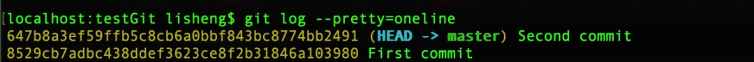 我们对当前暂存区进行一次提交,git commit -m "first commit"。