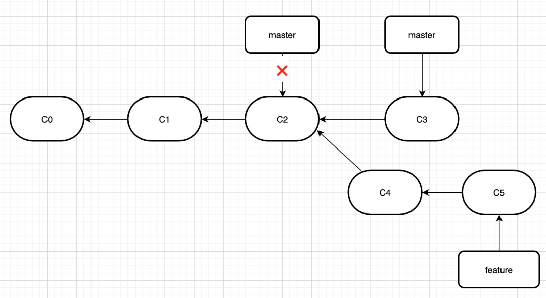 再举个栗子,假如初始存在feature和master分支情况是这样的。