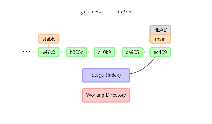 reset命令把当前分支指向另一个位置,并且有选择的变动工作目录和索引。也用来在从历史仓库中复制文件到索引,而不动工作目录。