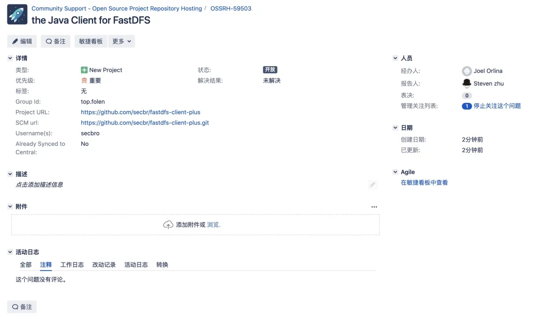 Sonatype通过JIRA来管理OSSRH仓库。JIRA是一个项目管理服务,类似于国内的Teambition。