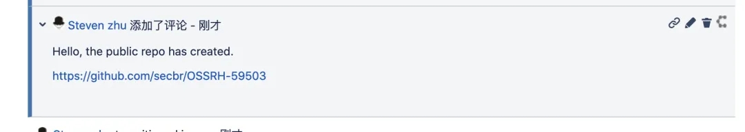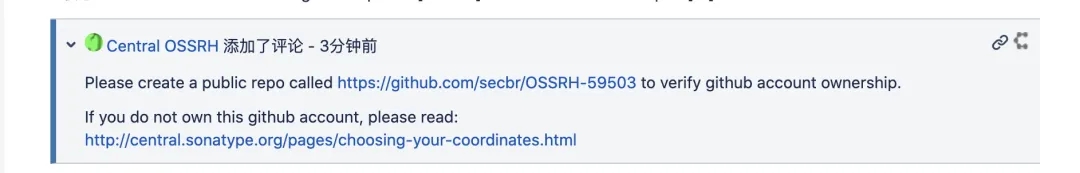 平台为了验证是否拥有GitHub的账户权限,因此需要申请者在GitHub上创建一个名称为“OSSRH-59503”的项目。在GitHub上创建这么一个空项目,然后在评论区回复即可。