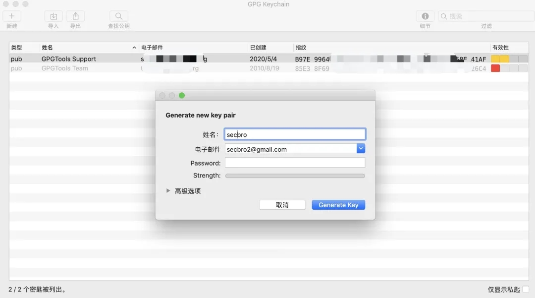 MacBook安装GPG非常简单,下载并安装GPG Suite即可:https://gpgtools.org/