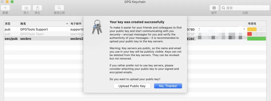 安装完成可进入创建GPG密钥对的操作界面,Mac下安装完成弹出如下页面: