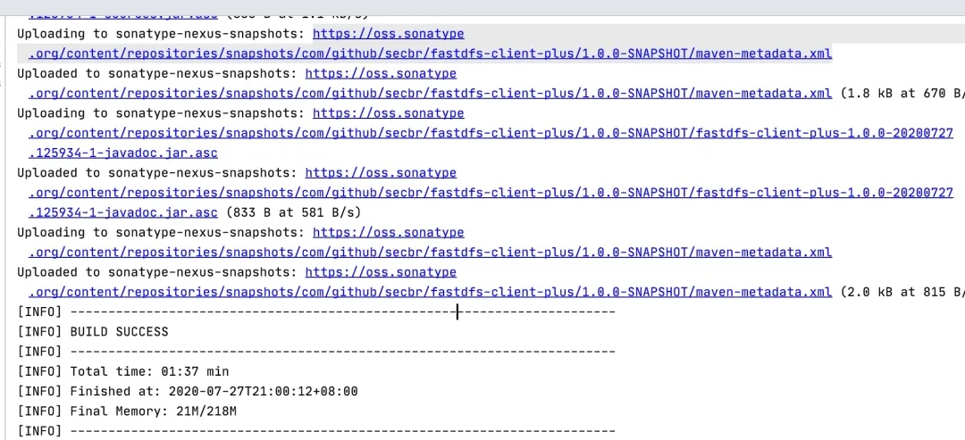 执行上述命令,打包并上传。release便是上面配置的profile元素的id。
