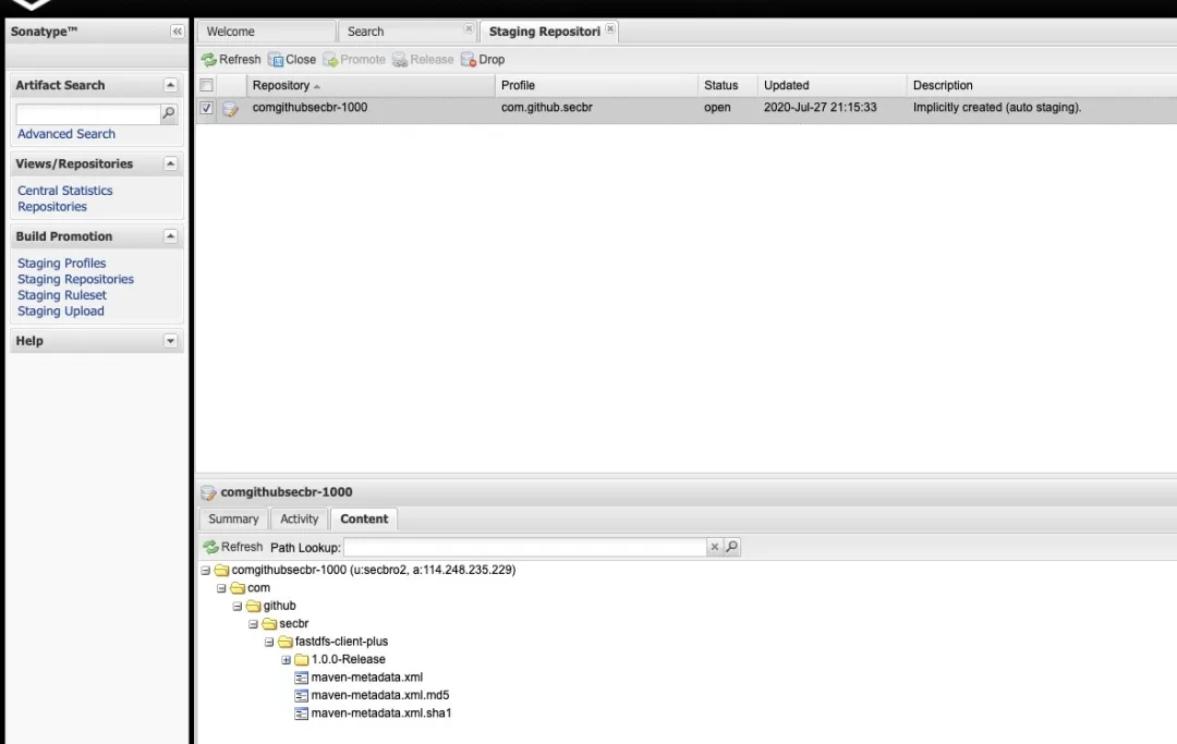 如果是Release后缀,则可直接在Staging Repositories中看到(有可能要稍等一下,等待平台处理)。