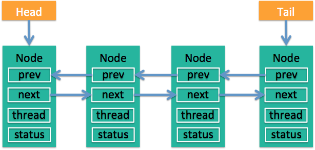 CLH队列:带头结点的双向非循环链表(如下图所示):