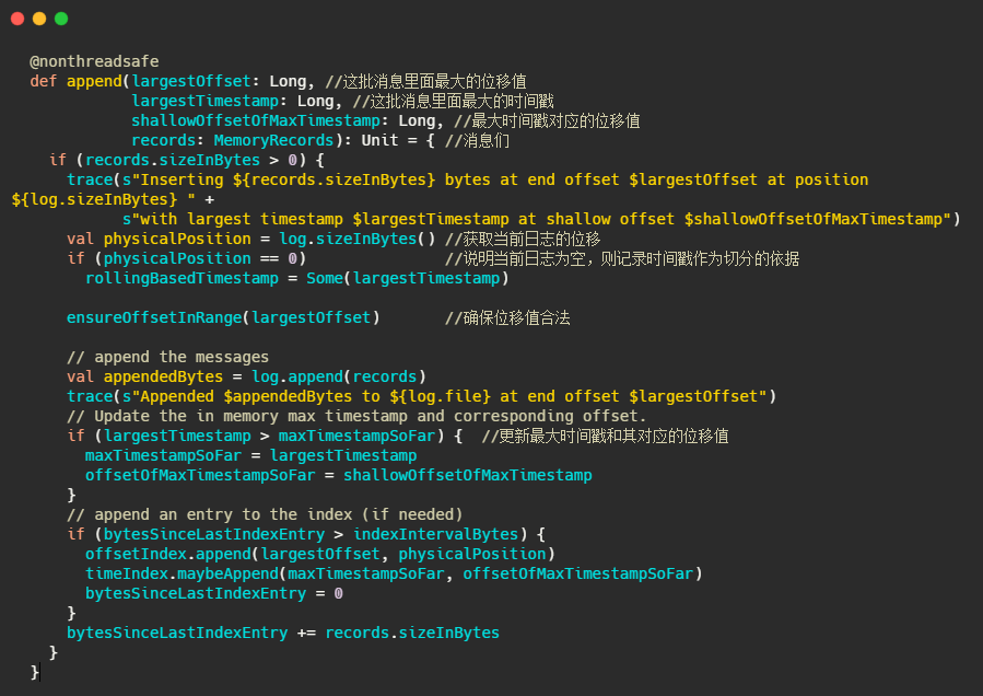 5、更新索引项,如果需要的话(bytesSinceLastIndexEntry > indexIntervalBytes)