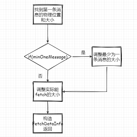 3、判断minOneMessage是否为true,若是则调整为必定返回一条消息大小,其实就是在单条消息大于maxSize的情况下得以返回,防止消费者饿死