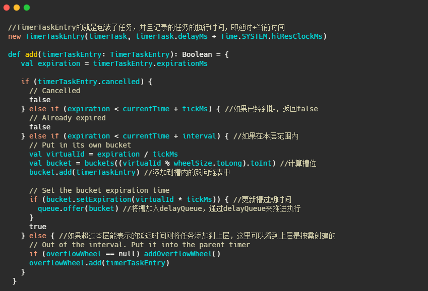 上面我们说到 Kafka 中的时间轮是多层次时间轮实现,总的而言实现和上述说的思路一致。不过细节有些不同,并且做了点优化。