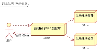 场景说明:用户注册后,需要发注册邮件和注册短信。传统的做法有两种:串行的方式和并行方式。