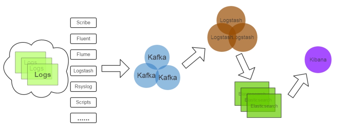 日志采集客户端,负责日志数据采集,定时写受写入Kafka队列;Kafka消息队列,负责日志数据的接收,存储和转发;日志处理应用:订阅并消费kafka队列中的日志数据。